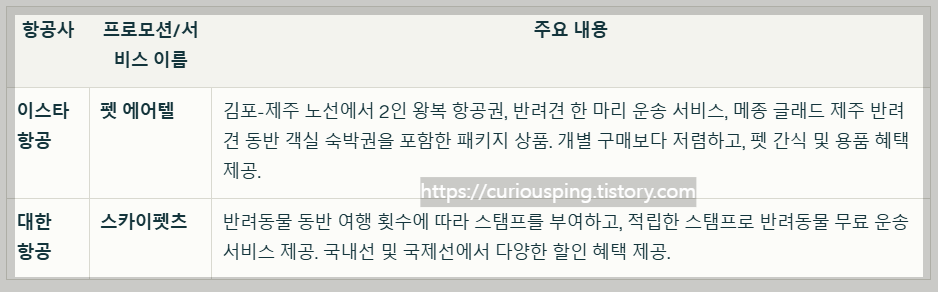 | 대한항공 | O | 스카이펫츠 프로그램 운영 (마일리지 적립) |