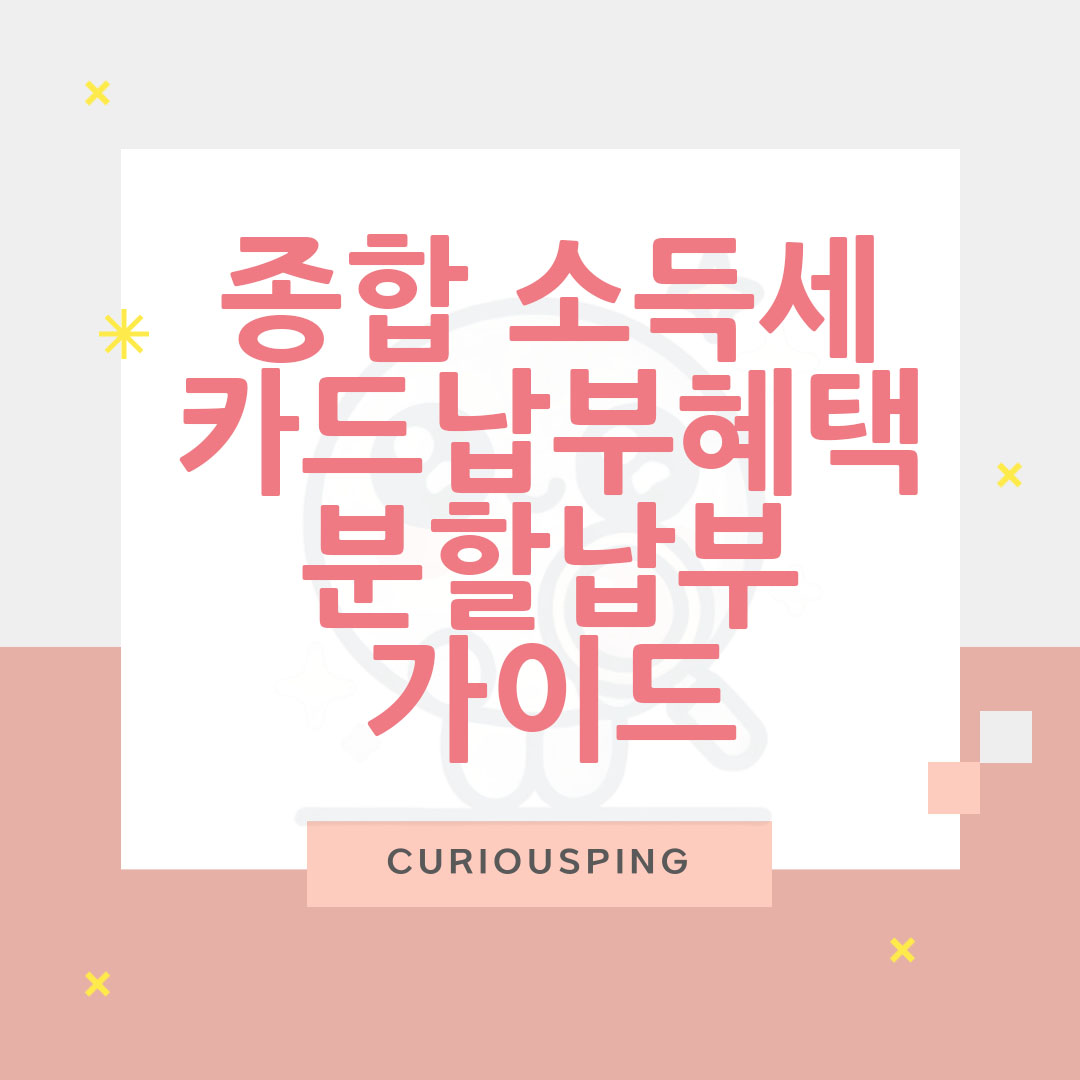 종합소득세 납부, 생각만 해도 머리가 지끈거리시죠? 하지만 이제 걱정은 NO! 분할납부와 카드 납부라는 든든한 지원군이 있으니까요! 똑소리 나는 납세 전략으로 세금 납부 부담 확~ 줄이는 비법, 지금부터 하나씩 파헤쳐 보자고요!
